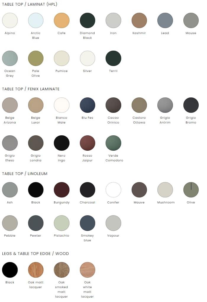 La Space est une table ronde minimaliste au design organique et élégant, qui s’intègre parfaitement dans tout type d’espace. Son plateau arrondi optimise la surface disponible, tandis que sa base simple assure une grande stabilité, aussi bien pour un usage domestique que professionnel. Disponible avec des plateaux en bois, stratifié ou linoléum, elle allie esthétique et résistance. Les pieds se déclinent en chêne naturel, chêne blanchi ou laqué noir, offrant la possibilité de personnaliser la table et de l’harmoniser avec le reste de la décoration.