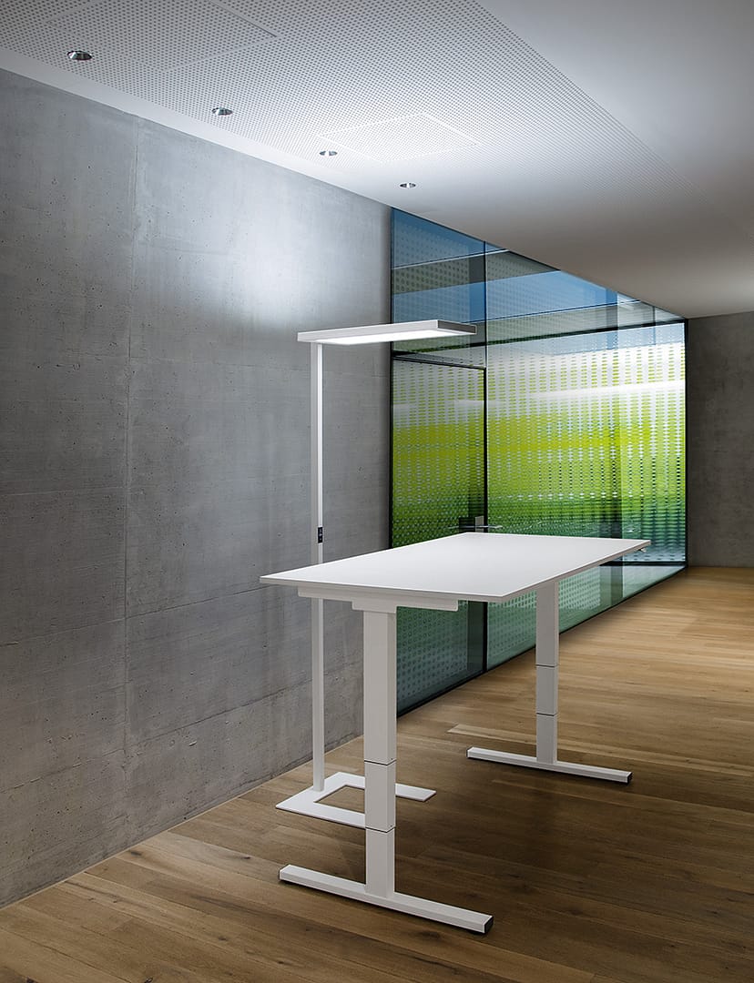 Le corps a besoin d’espace pourque les pensées se concrétisent etque les discours percutent. Lestables assis/debout vous offrent lapossibilité de bouger pendant letravail, ce qui est sain et ouvre denouvelles perspectives. Grâce àun moteur silencieux et performant,les tables assis/debout muniesd’une commande peuvent êtreréglées en continu et s’arrêtentautomatiquement. Un boîtierde commande avec écran peutmémoriser jusqu’à 4 positions.
